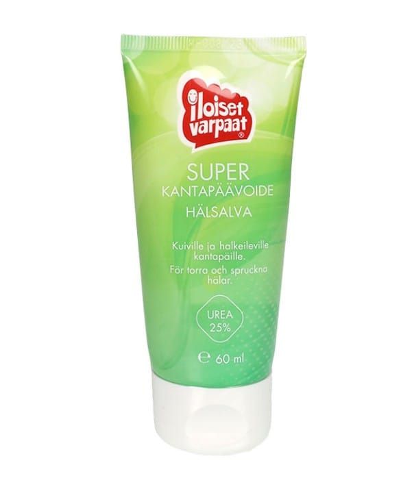 Iloiset Varpaat Super -kantapäävoide on karheille, kuiville ja halkeileville jaloille ja erityisesti kantapäille tarkoitettu erikoisvoide, joka kerran päivässä käytettynä tuottaa tulosta jo muutamassa päivässä.