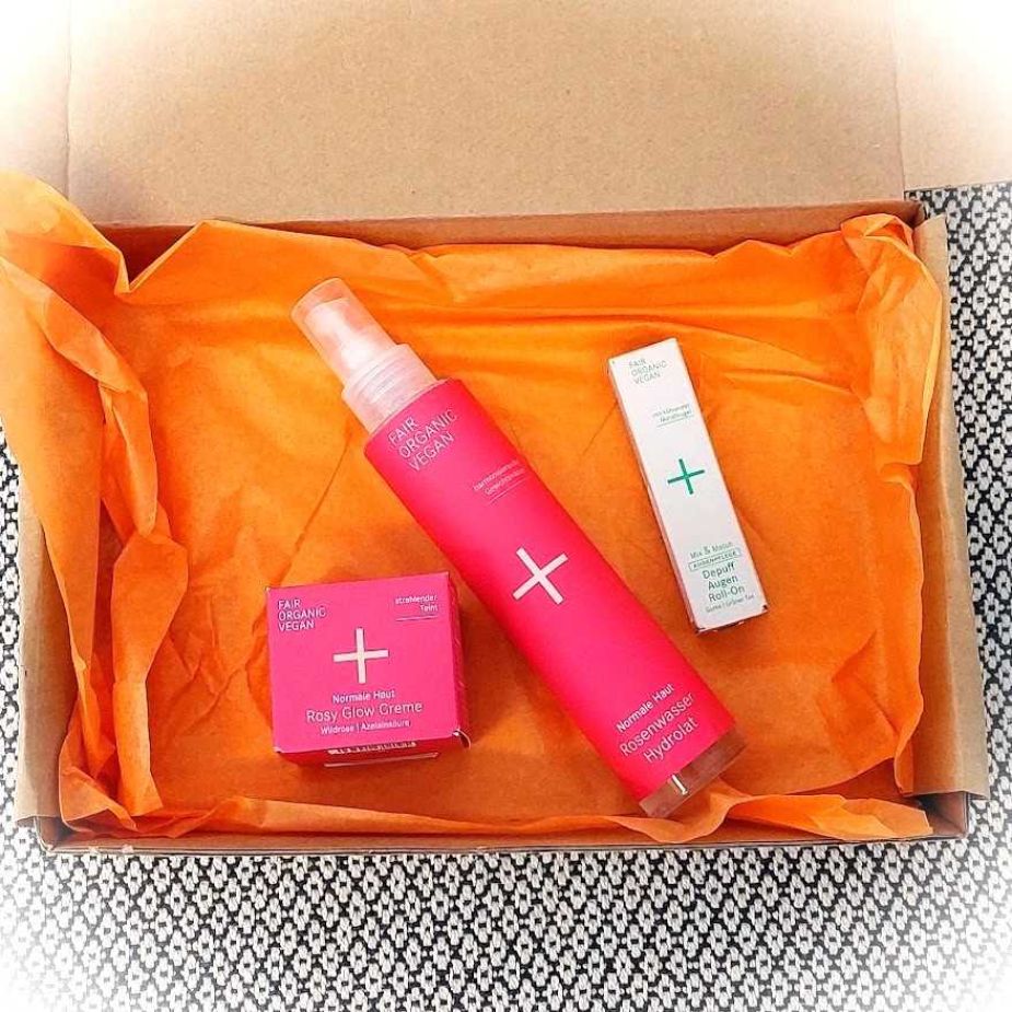 Ekologinen lahjapakkaus sisältää kolme vegaanista luonnonkosmetiikan helppokäyttöistä ihanuutta; ruusuveden, heleyttävän päivävoiteen ja roll-on -silmänympärysgeelin.